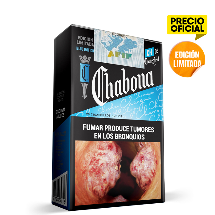 Nueva edición limitada CH de Chesterfield. Mismo precio, mismo sabor. 20 cigarrillos rubios contiene mentol.