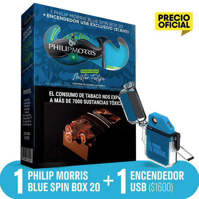 1 pack Philip Morris Blue Spin Box 20 + un encendedor USB
